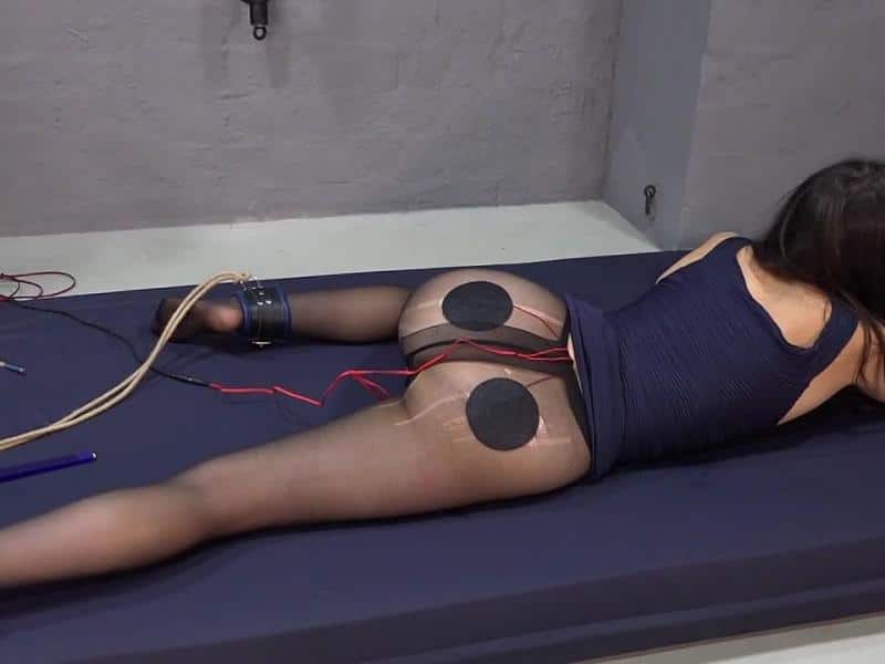 Zuerst wird die Muschi der gefesselten Sklavin mit dem Power Clit Vibrator bearbeitet. Danach werden der kleinen Schlampe Elektropads am Arsch unter die Strumpfhose geschoben und der Popo unter Strom gesetzt. Zusätzlich wird die Sklavin mit dem neuen Elektrostab malträtiert.