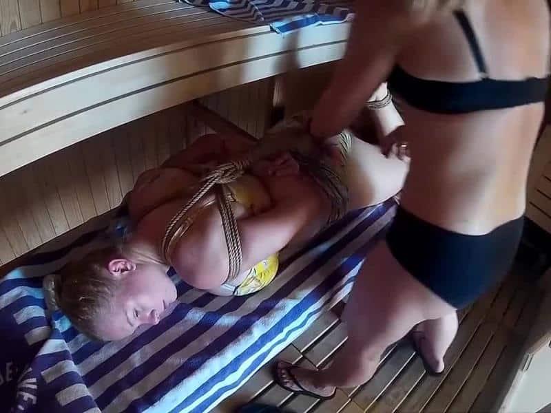Wenns warm wird, können heiße Mädels im Spiel sein. Oder eine finnische Sauna. Oder beides. Denn dort im Spa verpackt Riggerin Hera Delgado ihr kleines Bunny zu einem Hogtie-Paket und lässt sie in der Hitze schmoren.