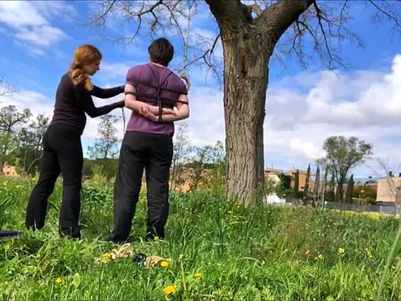 Teil 1 – Wenn Hera ihre Seile auspackt fügt sich sogar der süße Spanier. Auf der grünen Wiese unter einem Baum schnürt sie zunächst seinen Oberkörper. Und er macht brav alles mit. Fortsetzung mit Teil 2