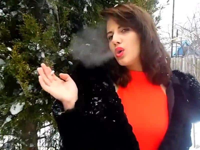 Ich ziehe einen Pelz an und gehe draußen, um mir eine Zigarette zu rauchen. Bist du daran interessiert anzuschauen, wie ich Rauch aus meinem Mund blase?