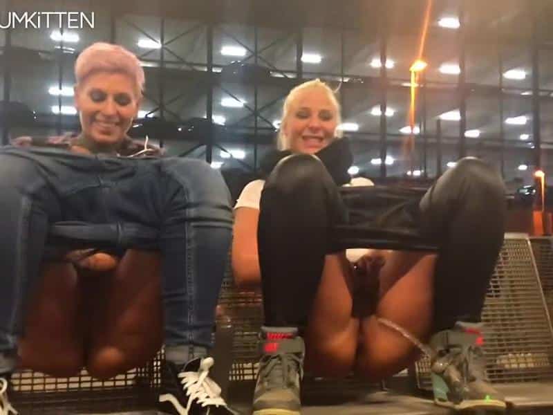 Nach einem geilen Party Abend mit meiner Freundin LadyKinkyCat wollen wir uns mit dem Zug auf den Heimweg machen und müssen dringend pissen. Da weit und breit keine Toilette zu finden ist, ziehen wir uns frech die Hosen runter und pissen dreist auf den Bahnsteig obwohl da noch überall Leute rum laufen. Ich glaube dem Kerl am Gleis gegenüber hat es besoders gefallen. Leider haben wir niemanden gefunden der uns danach sauber leckt und so mussten wir mit nassen Fotzen auf die nächste Bahn warten…