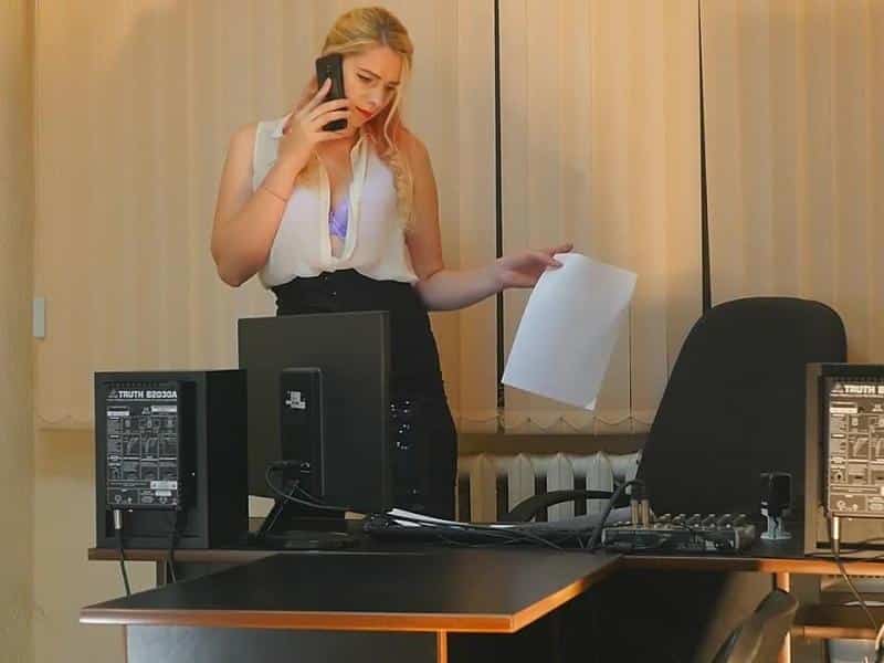 Hier hast du die Gelegenheit mich in der Rolle der Sekretärin zu schauen. Was steckt unter meinem weißen Hemd. Schaust du in den Ausschnitt? :):):)