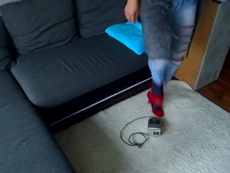 In diesen Video Crush ich in mein roten High Heels mein alten Radiowecker mach ihn schön kurz und kleins
