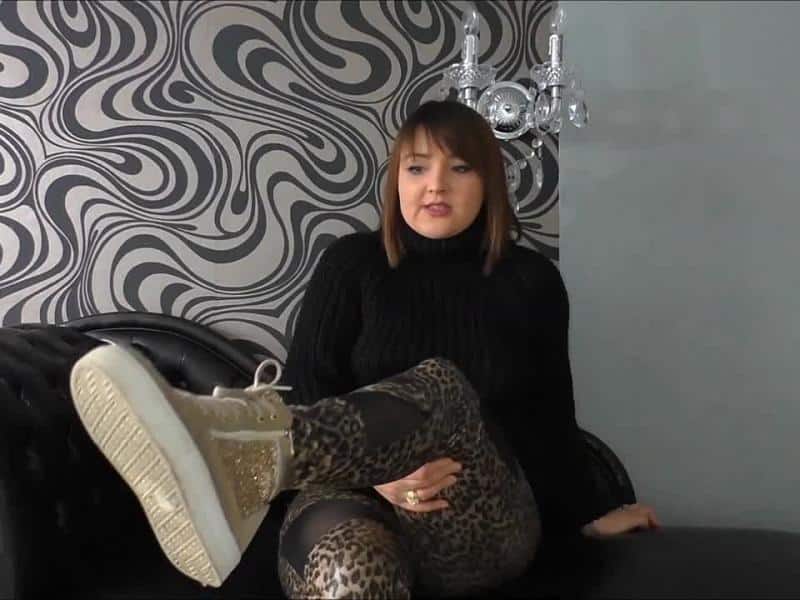 Bette mich an! Bette meine Luxussneaker an!! Kannst du sie gut erkennen von dort unten?! hahaha Sieh dir mal die Sohle an, erahnst du schon deine Aufgabe? Du wirst sie nun mit deiner Zunge reinigen. Solche hochwertigen Sneaker benötigen ständig intensive Pflege!!