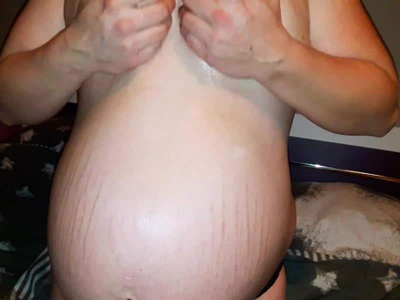 Ihr könnt mir zu sehen wie ich meinen großen strafen #Schwangerschaftsbauch selbst verwöhne, wie ich meinen Bauch und meine #Titten streichel und massiere und mir danach noch dick mit Creme einschmiere und sie einmassiere bis sie schön eingezogen ist. Schließlich soll man die Haut ja in der Schwangerschaft gut pflegen