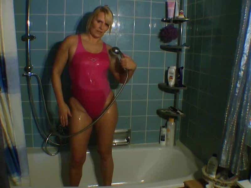 Willst du meinen neuen Pinken Swimsuit sehen, dann schau mal ich lasse ihn so Richtig schön nass werden. Er ist so Wahnsinnig eng auf der Haut.