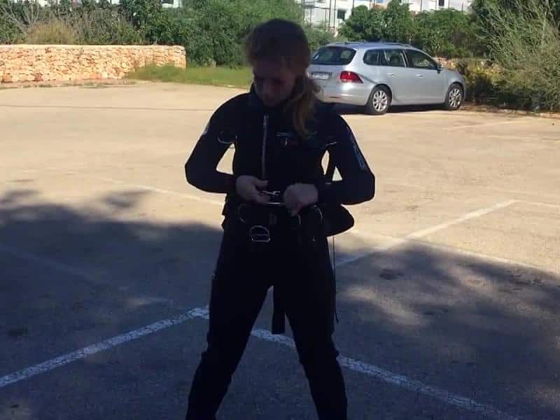 Um für meinem 856. Tauchgang in den Genuss der Schwerelosigkeit zu kommen, lasse ich Euch bei meinen Vorbereitungen zuschauen. Ich muss mich komplett umziehen. Ich zwänge mich in den Neoprenanzug. Er liegt wie eine zweite Haut an mir. Hinzu kommen Rucksack, Schuhe, Taucherbrille.